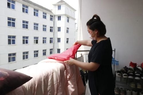 此次活动老师和志愿者们早早来到学生宿舍,有条不紊地进行取被、标记、运被、晒被、收被、放回等工作,在晾晒的过程中不时去敲打、拍击被子,确保每条被子都得到充足的晾晒和消毒,为同学们返校住宿的生活环境提供保障。