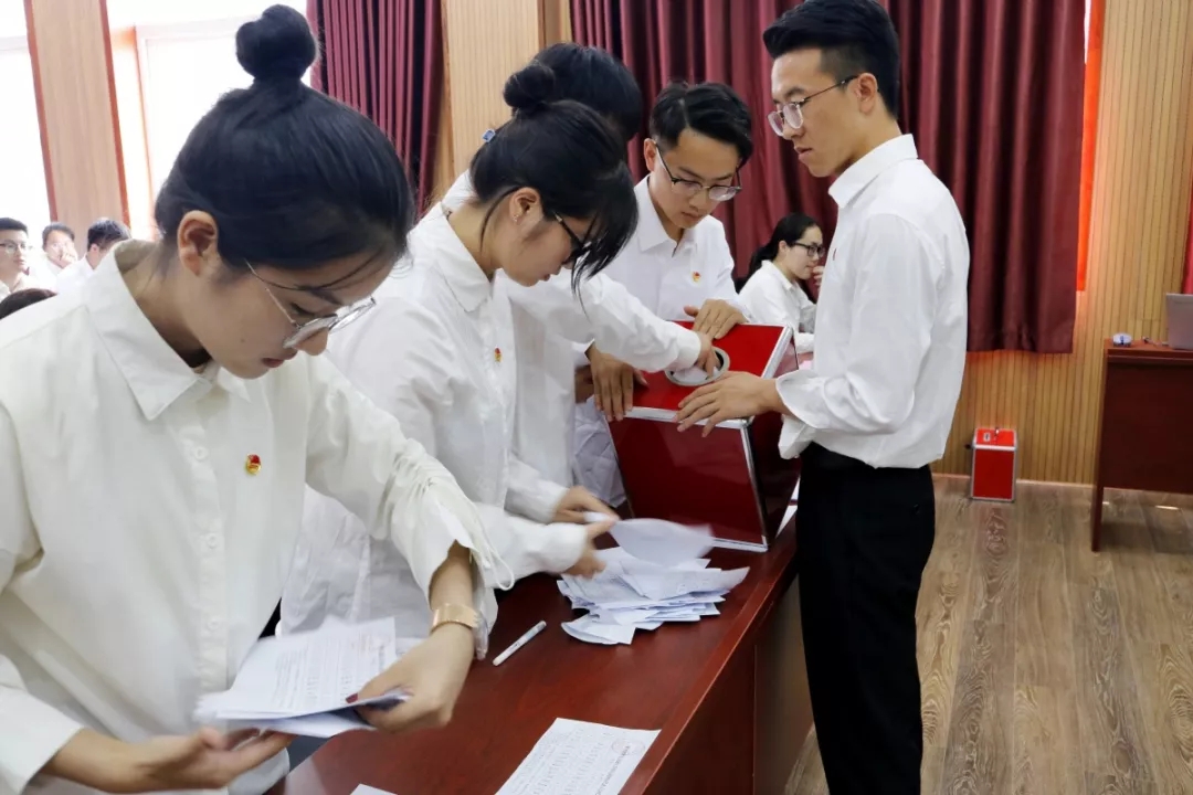 大会表决通过《“双代会”代表选举方法》后,以电气学院辅导员李凯强为总监票人及其他6位非“校双代会”代表的学生为监票人、计票人,在全体与会人员的投票选举中产生了本次“双代会”代表,其中包括团代表26人,学代表32人。由各位选举出的代表继续进行会议。