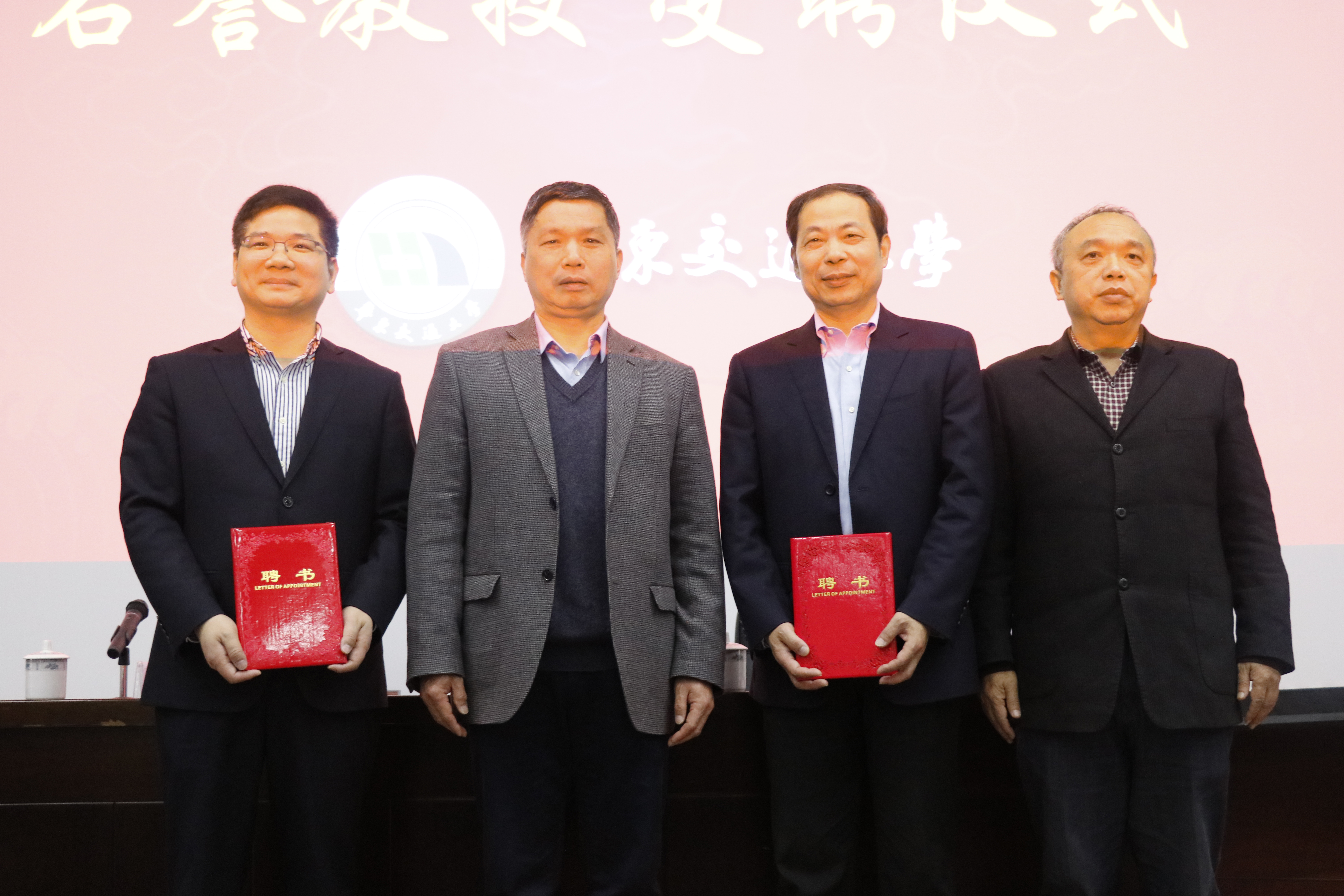 陈梦成首先对丁荣军院士及王卫安教授的到场表示热烈的欢迎。罗玉峰校长为丁荣军、王卫安颁发名誉教授的聘书并合影留念。我校杰出校友96届电力牵引专业王卫安代表中车株洲电力机车研究所有限公司为我校赠送研究所最新研制的智能列车模型。