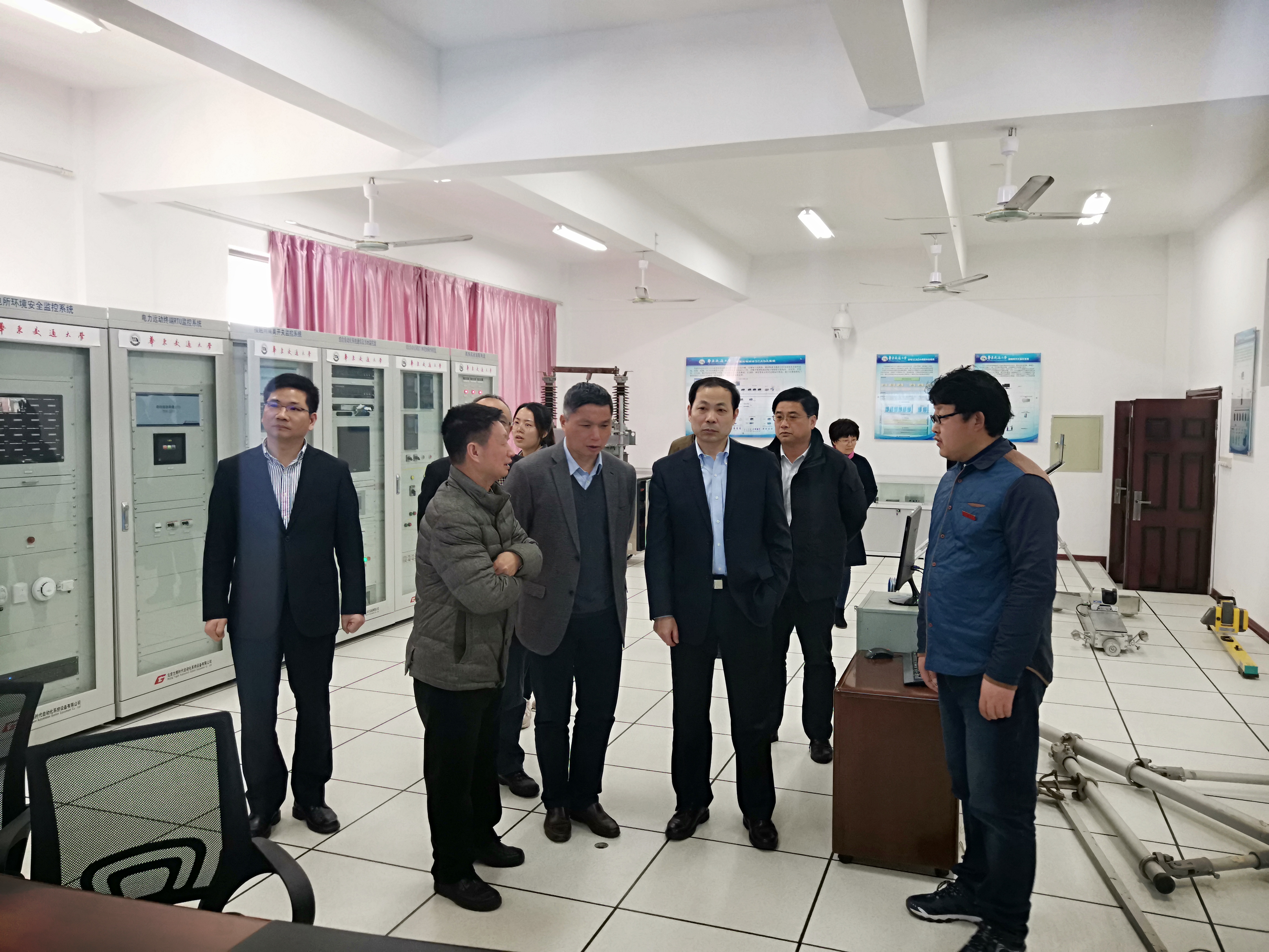 报告结束后,在罗玉峰和陈梦成的陪同下,丁荣军和王卫安一同前往参观我校轨道交通基础设施运维安全保障技术国家地方联合工程研究中心、高速列车运行过程仿真实验室以及铁路环境振动与噪声教育工程研究中心。