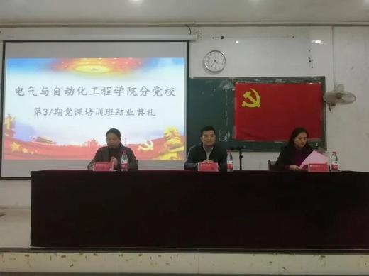 精彩党课培育优秀学员,结业典礼誓做祖国栋梁。yl6776永利集团电气学院分党校第37期党课培训班经过九期党课顺利结业,党课结业典礼于12月4日在电气楼拉开帷幕。我院党委副书记王巍,学工办主任兼团委书记郑洁出席本次典礼,典礼由党委组织员武婷婷老师主持。