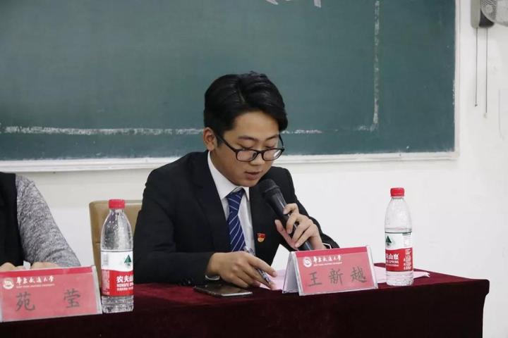 第35任学生会主席王新越介绍了现今学生会的组织构架,和新的三点工作举措:完善内部建设,加强院学生会、班级两级联动,健全学生权益维护机制。