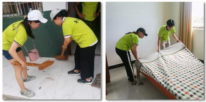 下午,宣讲团成员再一次来到杨蒋村为贫困户打扫安置房,2014年自精准扶贫之后,杨蒋村为特困户建造了一批安置房,每个在安置房内有厨房、卫生间、客厅、根据实际家庭情况有一居室和两居室。宣讲团成员们拿着扫帚、簸箕、拖把,为贫困户门仔细的打扫起来,把布满灰尘的房间打扫得焕然一新。