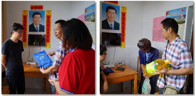 7月8日一早,在副镇长付林华和驻村干部林群的陪同下,武婷婷老师、王勇老师、苑莹老师和宣讲团成员前往杨蒋村走访了6户贫困户,为他们送来了米和油,杨蒋村村委书记蒋满球说:“我们政府一直把农村脱贫工作放在很重要的位置,今天走访的其中者两户人家已经在2017年在政策的扶持下成功脱贫。”
