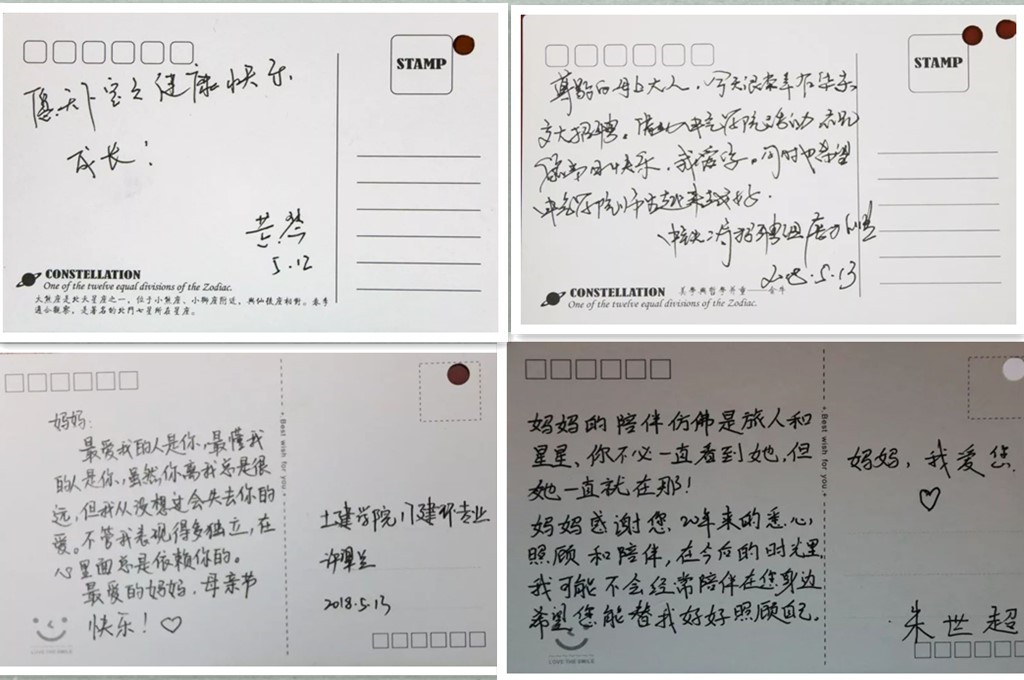 在5月13日,电气学院党委新媒体中心与电气学院青年志愿者协会共同举办了“爱于心,动于行”母亲节活动。此次活动有两种参与方式:书写明信片;接受采访。其中书写明信片主要针对校内老师同学,采访包括校内和校外。校内由电气学院党委新媒体中心负责,校外由电气学院青年志愿者协会负责。
