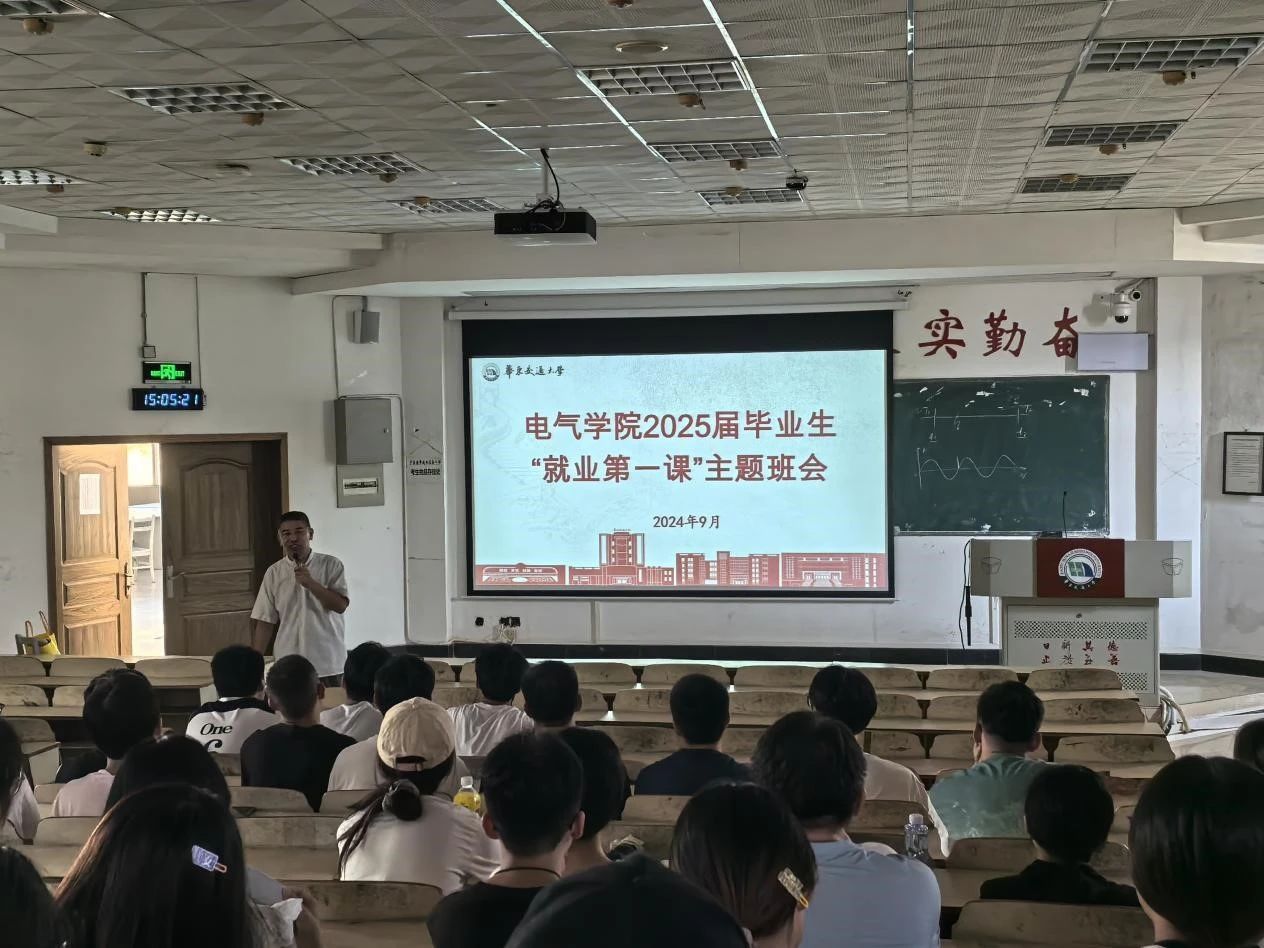 为贯彻落实党的二十大精神和习近平总书记关于稳就业、保就业的重要指示精神,引导毕业生树立正确的职业观、就业观和择业观,明确就业目标,激发就业动力,增强就业信心,促进我院2025届毕业生高质量充分就业。电气学院于开学第一周以班级为单位开展多场2025届就业形势宣讲主题班会,为即将毕业的795名学子提供全面的就业指导,帮助同学们明确职业方向,增强就业竞争力,同时促进班级内部的交流与互助,共同面对挑战,实现个人价值与职业梦想的双重飞跃。本次主题班会邀请了各教研室主任和部分专任教师代表以及2025届毕业班辅导员一同参加。