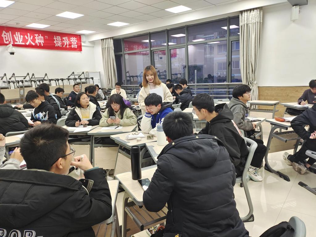 为进一步传承“大众创新,万众创业”的理念,提高我院学生的创新创业热情,培养大学生的创新思想和创业实践能力,营造积极向上的创新创业氛围,12月3日,我院学工办辅导员沈诗妤带领21级新生在教25栋323教室举办“创业火种”提升营活动。