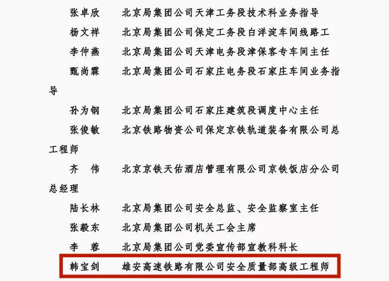 2017 -2021年间,负责京雄城际铁路四电工程和高压电力迁改的建设管理,优化高压电力迁改流程,在迁改方案评审、报规、环评、审价等环节上紧密衔接;真正把高压电力迁改实施在短期内落地,为项目实施创造了良好条件。参加了《京雄高铁全线BIM+GIS关键技术应用研究》科研课题,组织编制了BIM+GIS实施方案策划书。在专业精品工程和创新管理方面,取得了良好效果。2018年,获得北京局集团“建功立业先进生产(工作)者”,2019年获得国铁集团“新时代铁路榜样”。2021年获得铁路总工会“火车头”奖章。