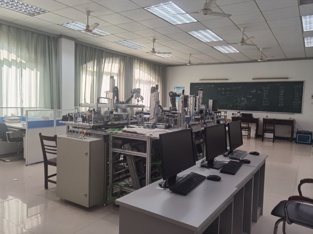 微机控制实验室主要承担自动化专业的实验教学工作,现有实验室面积总共95平方米,承担《电气可编程控制原理与应用》的课程实验。 可开出的实验项目有: 1、基本逻辑指令实验 2、步进顺控指令实验 3、特殊功能指令实验 4、装配流水线控制实验 5、三相异步电动机Y/△换接启动控制实验 6、五相步进电动机控制模拟实验 7、水塔水位控制模拟实验 8、通信实验 主要仪器设备有: 1、网络型可编程控制器实验装置 2、台式计算机 3、网络型电机转速控制模型 4、智能温度控制实训模型 5、变频恒压供水系统 6、电梯控制系统实训装置 7、PLC步进伺服实训平台 8、立体仓库实训装置 9、小车运动控制系统模型
